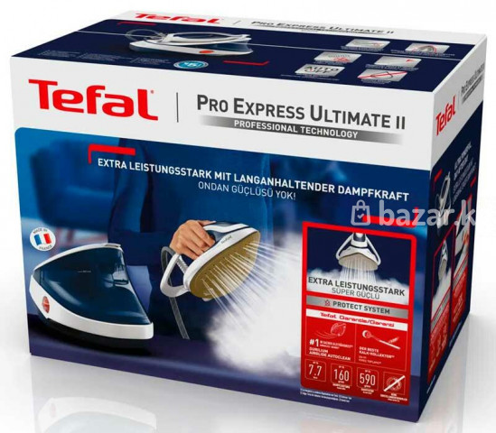 Tefal Pro Express Ultimate II — это невероятно мощные и удобные парогенераторы, которые с легкостью обеспечат бескопромиссный уход за одеждой и домашним текстилем. Приборы сочетают в себе высокую производительность и набор профессиональных характеристик: безопасность для любых видов ткани без дополнительных настроек, система сбора накипи для длительного срока службы, а также функция вертикального отпаривания для легкого ухода в последние минуты перед выходом из дома. Характеристики Давление пара 7,7 бар Мощность 3000 Вт Материал подошвы Durilium Airglide Autoclean Паровой удар 590 г/мин Подача пара 160 г/мин Противокапельная система Да Бойлер Да Коллектор от накипи Да Резервуар для воды 1,2 л Съемный резервуар для воды Да Автоотключение Да Индикация Есть Цвет Белый/синий Страна производства Франция Размер (ДxШxВ), см, без упаковки 41.50 x 24.50 x 29.60 Вес, кг, без упаковки 5.34 Вес, кг, с упаковкой 6.10 Размеры (ДxШxВ), см, с упаковкой 45.00 x 28.50 x 34.00