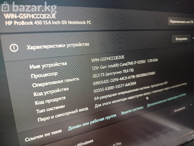 💻HP PROBOOK 450G9 15.6 дюйм" — мощный универсальный ноутбук бизнес‑класса с большим запасом мощности на годы вперед.В новом состоянии, проработал очень мало. 💻Корпус полностью металлический и лёгкий. ⚙️Характеристики: - Процессор Intel Core i7‑1255u 1.7 (12‑е поколение), Turbo Boost до 4.7 ГГц, 10 ядер/ 12 потоков - ОЗУ 20 Гб - Быстрый SSD 512 Гб NWME - Графика Intel Iris Xe — 4 Гб - Экран 15.6 дюйм" (1920×1080), тонкие рамки, отличная цветопередача - Клавиатура с цифровым блоком - Свежая Windows 11 Pro + набор программ для офиса и работы ⚙️Порты и беспроводные возможности: - Wi‑Fi, Bluetooth - HDMI - USB 2.0 и USB 3.1 - LAN (RJ‑45) - Комбинированный аудиоразъем - Слот SD‑card, кардридер - Веб‑камера, встроенный микрофон, стереодинамики 🧑💻Подходит для: - программирования и учебы - работы учителей, студентов и айти‑специалистов - 3D, AutoCAD, ArchiCAD - Photoshop и обработки фото - работы с маркетплейсами (Wildberries, Ozon и др.) - бухгалтерии (1С), таргета, офисных задач - современных игр на средних настройках 🎁В комплекте на фото: зарядное устройство, сумка, мышь и коврик в подарок. 🎯Дополнительно: - 3 месяца гарантии - Обмена и рассрочки нет - Бесплатная доставка по всему Кыргызстану