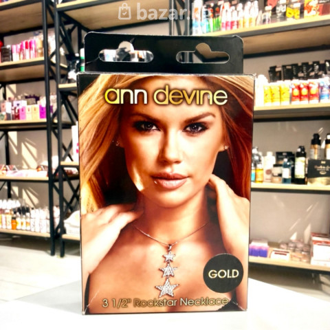 Ann Devine Rockstar Necklace Gold — эффектная подвеска в форме трёх переплетающихся звёзд, усыпанных сверкающими стразами (диаметр подвески ≈ 3 1/2” / 9 см). Стиль — яркий, гламурный, рок-н-ролльный («Rockstar»). Цепочка тонкая металлическая (цвет золото), подвеска массивная и заметная — идеально для вечернего выхода, фотосессий, клубов или как акцент в casual-образе. Упакована в брендовую коробку с фото Ann Devine. Подчёркивает уверенность и сексуальность.