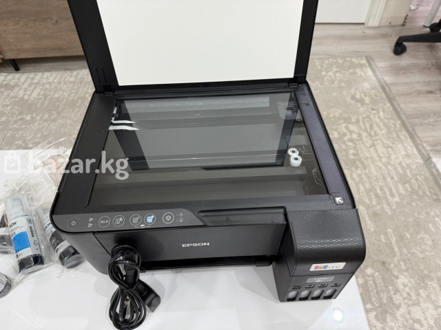 МФУ Epson с системой непрерывной подачи чернил (EcoTank) - Функции: печать, копирование, сканирование (планшетный сканер). - Технология печати: струйная, цветная. - Встроенные чернильные резервуары EcoTank с прозрачными окнами уровня и отдельными емкостями для C/M/Y/K. - Управление: панель с кнопками, индикация, отдельные клавиши для копирования и Wi‑Fi. - Подключение: Wi‑Fi и USB. - Лоток подачи бумаги расположен сзади, регулировка направляющих. - Совместимые чернила: оригинальные флаконы Epson серии 103 (на фото — комплект CMYK в индивидуальных запечатанных пакетах). - В комплекте: устройство, сетевой кабель, флаконы чернил 103 (C, M, Y, K). Подходит для домашней и офисной печати: документы, цветные материалы и фотографии. Экономичный расход за счет больших емкостей чернил и простая дозаправка из флаконов. Сканер с крышкой формата A4 обеспечивает точное копирование и оцифровку. Wi‑Fi позволяет печатать с компьютеров и мобильных устройств в сети.