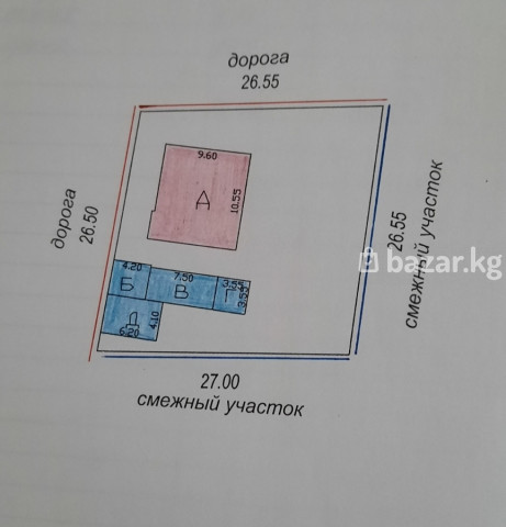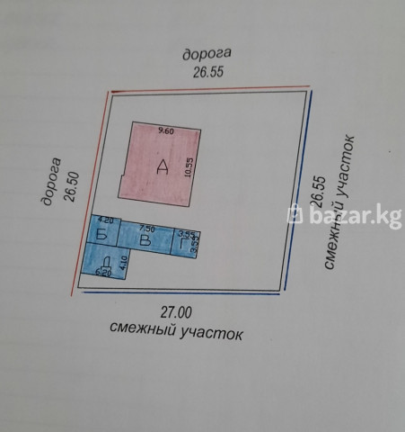 Продается!!! Дом в г. Бишкек,(бывшее село Пригородное), S - 76,76м2 1990года постройки, угловой. В доме 4комнаты, кухня -9,,43м2,санузел,совмещенный с ванной-4,61м2, коридор, прихожая. Дом оснащен элетричеством, природным газом, водой. Подключён к центральной канализации. Отопление водяное природным газом,можно и твердым топливом ( установлены два котла: газовый и котоел под твердое топливо). Окна пластиковые. Стены под обои. Полы деревянные( линолеум). Наружные стены декоративная штукатурка. Крыша профнастил. На участке построены хозпостройки, баня рабочая, навес для транспорта. Участок - 7,0 соток. Ширина участка- 26,50 метров. Длина участка - 27,0 метров. Цена - 120000$. Телефон - 0707036398.