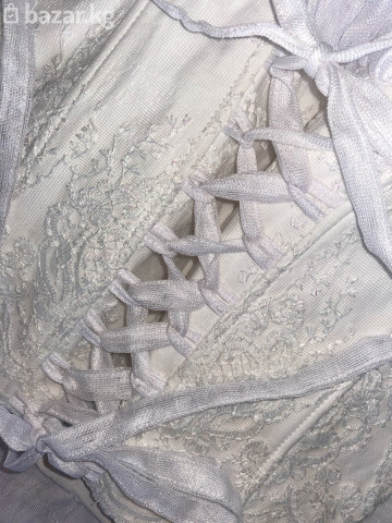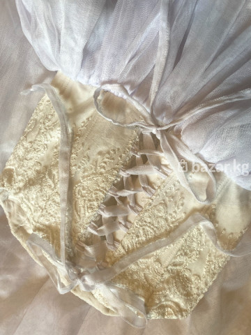 Белое свадебное платье с корсетным с открытым верхом и пышной юбкой, украшенное кружевом. Лиф платья выполнен из плотной ткани с декоративной кружевной отделкой и шнуровкой на спине, обеспечивающей индивидуальную посадку. Многослойная юбка с обильным кружевным декором создает объемный силуэт. Идеально подходит для свадебной церемонии, создавая элегантный и романтичный образ. Платья трансформер, можно носить с верхним кружевом и без неё обычном белом виде. Фата имеет (в необычном стиле). Специально было сшита под заказ. Само стоимость платья обошлось 30 тысячи, продаю за 15-20 тысячи так как Б/У. Одевала только один раз (на свадьбе) Ватсапп номер: Доставим сами бесплатно. Цвет: Белый - Тип платья: Свадебное - Материал: Кружево, текстиль - Стиль: Пышное - Детали: Корсет, шнуровка - Декор: Кружевная отделка - Силуэт: А-силуэт - Вырез: Открытый верх - Длина: В пол - Повод: Свадьба, торжество - Застежка: Шнуровка - Фасон: Длинное - Рукава: Без рукавов - Ткань: Плотная, воздушная - Подкладка: Присутствует - Верх: Корсетный - Юбка: Многослойная - Отделка: Цветочный узор - Посадка: Регулируемая - Дизайн: Классический.