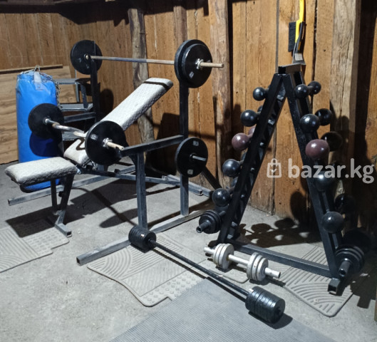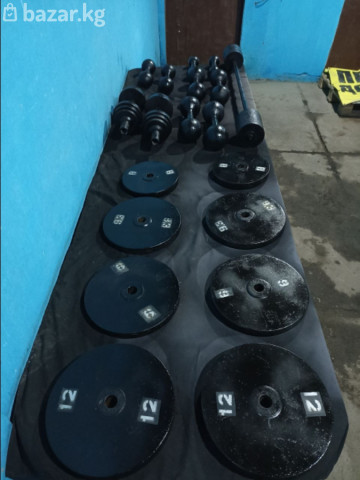 Стойка для груши Турник лесенка брусья: 11000сом Стойка для жима лёжа: 5000сом Скамья универсальная: 4000 Груша: 1500сом Гриф прямой большой: 4500сом Гриф маленький кривой: 3500сом Штанга для рук прямая 22кг: 3000сом. Полка стойка для гантелей:2000сом Блины Металл СССР. 👍 1кг 200сом общий вес 78кг ×200=15600сом . Не Китай не Узбекистан. Гантели: 12кг 3шт 6000сом 10кг пара 4000сом 8кг 3шт 4000сом 6кг 1шт 1500 сом 5кг пара 3000сом 2кг пара 2000 сом. Цена за весь Арсенал 70600 сом . Можете сами посчитать. ЕСЛИ ВСЕ СРАЗУ ЗАБЕРЁТЕ СДЕЛАЮ ХОРОШУЮ СКИДКУ И ОФОРМЛЮ ДОСТАВКУ.