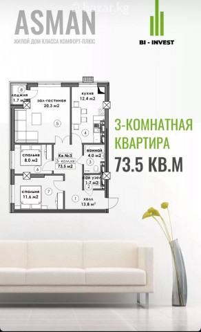 Продаю 2- комнатную Элитку на Ахунбаева/ Куйручук (район Кок Жара) Класс: Комфорт+ Этаж 3 из 12: Строй компания «Бийиктик инвестp» Жилой Комплекс «Асман» Стены дома из жженного кирпича Утепление дома из Базальтового волокна Фасад выполнен из Гранита и Керамогранита; Окна Смотрят: на Запад и Север Состояние квартиры ПСО в 2025году; Документы: Договор долевого участия; Общая Площадь: 73,5м2 Цена: 83000$ Обращайтесь по телефонам: 0702 645 312 (Whatsapp звонки) 0558 23 23 74 (Whatsapp звонки)