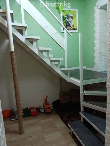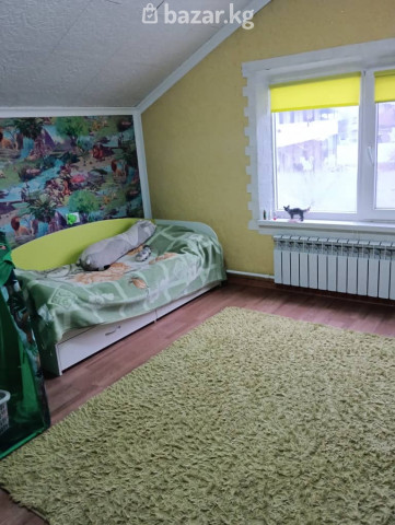 Находится в городе Бишкек (ранее село Аламедин), улица Чернышевского. Дом с мансардой, 5 комнат, кухня, туалет в доме. Саманный, частично шлакоблок с утеплением. Окна пластиковые, уютное расположение комнат. Просторный двор, частично перекрытый навесом, можно разместить две машины, есть просторный гараж. На территории располагается баня с ванной, сарай, курятник, место для летнего отдыха, участок 5 соток, общая площадь 7 соток. Площадь дома 90 кв/м. Из коммуникаций подключен газ, 3 фазный ввод электричества, интернет от Акнет, водопровод, в ближайшее время обещают возможность подключения к центральной канализации. Установлено два кондиционера, теплые полы, отопление от газового и твердотопливного котла. Очень живописная природа, воздух чище и прохладнее. Дом располагается на возвышенности, воды в подвалах нет. В пределах одного километра находится два крупных супермаркета, аптеки, школа, садик, недалеко Аламединский рынок.