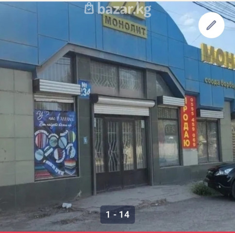 Продаю! коммерческое здание, на центр. улице города район рынка "Дордой" Отдельно стоящее одноэтажное здание находящееся по улице Элебесова 243 рядом с рынком "Дордой". Торговый центр "МОНОЛИТ" *Общая площадь - 1033 м2; *Участок - 10 сот.; *Количество жилых комнат – 10 +2 торговых зала; *Этаж – 1; *Тип строения – кирпич; *Коммуникации – электричество; водопровод; интернет; горячая вода; отопление; канализация; Адрес: г. Бишкек, ул. Элебесова 243 *Цена: 700 000$ (торг.) Земля: зеленая книга на 49 лет(64 М2), красная книга 0,980 М2 (10 сот.). Застроенная площадь - 1033.7 М2, Общая магазин 860,2 М2. Центральная канализация, стены полностью кирпич, фундамент бетон, условия водоканал, тех. условия, электроэнэргия 35кВт. Помещение можно использовать под торговый центр, цех, кафе. *Обращаться по тел.: +996709007490, +996708087295