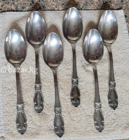 Продаю мельхиоровые ложки 2 набора. Ложки в хорошем состоянии, практически все время проьежали в "закромах", доставлимь только по великим праздникам, а последние лет 10 лежали без применения. Стоимость указана за 1 набор из 6 шт.