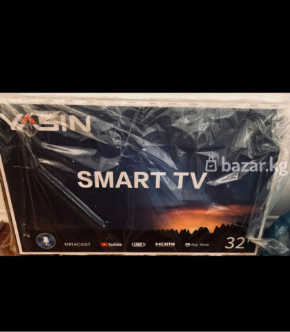 Смарт‑телевизор YASIN 32" (модель 32E9000) Основные характеристики: - Диагональ: 32 дюйма - Платформа: Android 14 - SMART TV с доступом к App Store - Поддержка Miracast (беспроводное дублирование экрана смартфона/планшета) - Предустановленные сервисы: YouTube, Netflix (иконки на упаковке) - Голосовое управление (значок микрофона) - Интерфейсы: HDMI, USB - Коммуникации и мультимедиа: воспроизведение контента с носителей через USB, потоковые приложения, обновления через магазин приложений Комплектация и особенности, указанные на коробке: - Тонкая рамка, настенное крепление VESA (схема на боковой стороне) - Энергосберегающий режим - Защита при транспортировке (маркировки «хрупкое/вверх» на боковой стороне упаковки)