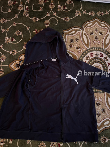 -Бренд: Puma -Тип одежды:Толстовка -Застежка:Молния -Цвет: Темно-синий -Декор: Логотип спереди, надпись на спине -Рукава: Длинные -Капюшон:Есть -Стиль: Спортивный,повседневный -Материал: Текстиль -Пол: Мужской -Применение: Для спорта, для прогулок -Сезон: Демисезон -Силуэт: Прямой -Манжеты: Эластичные -Карман: Спереди, раздельный -Ворот: Отсутствует -Размер: 2XXl