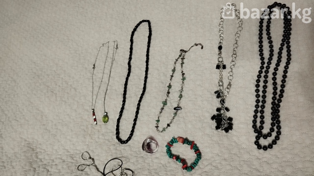 Здесь есть серебренные украшения, натуральные камни агаты, и другие украшения. По отдельности продаётся. Есть новые и б/у.