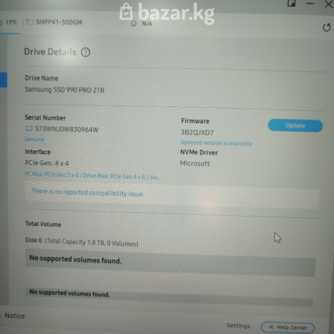 Один из лучших внутренних SSD. Топовая модель от Samsung для PCI-E 4.0 x4. SSD от Samsung - это надежность, долговечность и производительность. Оригинальный, практически новый. Без упаковки (смотрите фото). Характеристики: Емкость: 2 ТБ Тип флэш-памяти: V-NAND TLC Форм-фактор: 2280 PCI-E 4.0 x4 Объем буфера: 2048 МБ Скорость чтения: до 7450 МБ/с Скорость записи: до 6900 МБ/с Время наработки на отказ: 1500000 ч Суммарное число записываемых байтов (TBW): 1200 ТБ Поддержка технологий: TRIM, SMART, Шифрование данных Макс. рабочая температура: 70 °C Потребляемая мощность: до 8,5 Вт Толщина: 2,3 мм Длина: 80 мм Ширина: 22 мм Вес: 9 г Пожалуйста, прочитайте внимательно! Это не магазин. Я - частное лицо. Вещи у меня единичные. Нет гарантии, нет возврата, нет обмена. Времени на проверку не предоставляется. Проверка возможна при самовывозе или до отправки, после полной предоплаты (если доставка). Торг не уместен, все цены окончательные. По вопросам пишите на Ватсапп. Оставляйте именно текстовые сообщения, звонки и голосовые могут быть пропущены. Просьба, пишите с 9:00 до 21:00