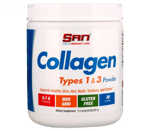 Белок коллаген необходим для здоровья кожи, волос, ногтей, соединительной ткани и костей Поддерживает здоровье кожи, волос, ногтей, костей и суставов Не содержит ГМО, глютен и сою Гидролизован для быстрого растворения и полного всасывания Обеспечивает нормальную гибкость и подвижность Дайте вашему организму нужные питательные вещества Поддержание здорового тела означает больше, чем выглядеть просто худым и подтянутым. Чтобы создать действительно здоровое тело, вам нужно обеспечивать все ткани вашего организма правильными структурными блоками. Вот почему вам нужен коллаген 1 и 3 типов, содержащийся в SAN Collagen Types 1 & 3. Рецепт поддержания здорового тела относительно прост: физические нагрузки и диета с большим количеством овощей. Но как насчет оптимального питания вашей кожи, волос, ногтей, костей и суставов? Коллаген является самым распространенным белком в вашем организме, а добавка Collagen Types 1 & 3 от SAN содержит чистый, натуральный (без гормонов) белок без ГМО из источников гидролизованного коллагена высочайшего качества, который легко смешивается, а также полностью переваривается, усваивается и используется. Сбросьте настройки своих возрастных часов С возрастом ваше тело теряет коллаген, что приводит к заметным и нежелательным видимым побочным эффектам. Когда ваша кожа теряет эластичность и плотность, вы можете замечать больше морщин и более выраженные неровности при целлюлите, что также означает, что ваша кожа может стать грубой. Но если ваши соединительные ткани, кровеносные сосуды и желудочно-кишечная система (просвет кишечника) теряют эластичность и плотность, то это приводит к гораздо более серьезным последствиям, которые вы можете ощущать в повседневной жизни, например синдром повышенной проницаемости кишечника. Этот синдром является расстройством пищеварения, при котором непереваренные частицы пищи и токсины способны попадать в ваш кровоток из-за повышенной проницаемости, вызывая множество других проблем со здоровьем. Прием белковых добавок, содержащих коллаген, может помочь укрепить стенку кишечника и предотвратить многочисленные проблемы с желудочно-кишечным трактом, а также увеличить поглощение воды, что поддерживает регулярный стул. Здоровое старение означает, что вы остаетесь активными и поддерживаете ваши потребностям в питании. Коллаген 1 и 3 типов является основным белком, который необходим для поддержания здоровой молодой кожи, волос, ногтей и правильного функционирования пищеварительной системы. Наиболее распространенной формой в организме является коллаген 1 типа, который необходим для поддержания здоровья кожи, волос, ногтей, костей, соединительной ткани и кишечной стенки. Коллаген 3 типа также важен для хорошего состояния кожи, но большее значение он имеет для поддержания здоровья внутренних органов и кровеносных сосудов. Добавка Collagen Types 1 & 3 обеспечивает идеальный источник коллагена обоих типов без ГМО, сои и глютена. Не позволяйте своему возрасту определять, на сколько лет вы себя чувствуете или выглядите. Используйте добавку Collagen Types 1 & 3 в качестве строительных блоков, необходимых для поддержания здоровых тканей во всем организме. Содержание веществ в одной порции (6,7 грамм): Витамин С (калия аскорбат) 30 мг Кальций 4,2 мг Натрий 17,1 мг Коллаген 1 и 3 типов (говяжий) 6,7 г Ингредиенты: Микрокри