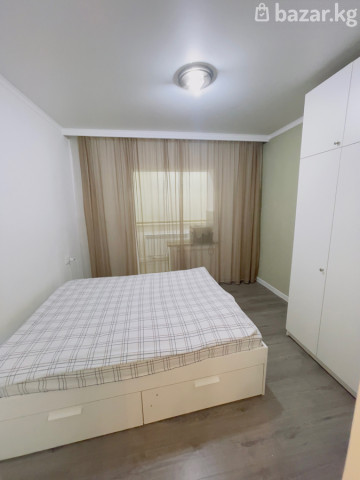 Сдаётся светлая 2‑комнатная квартира с изолированными комнатами. Планировка и интерьер: - Просторная гостиная с большим окном, трековым освещением, настенным креплением под ТВ и кондиционером. - Отдельная спальня с двуспальной кроватью с выдвижными ящиками для хранения и высоким шкафом. - Уютный коридор с местом для системы хранения. - Кухонная зона с холодильником Samsung, рабочей поверхностью и большим окном/остеклённой лоджией с легкими шторами. - Санузел раздельный (двери в ванную и туалет из коридора). - Полы: ламинат и ковровое покрытие в комнате. - Окна с полупрозрачными шторами, обеспечивают много естественного света. Оснащение: - Кондиционер в гостиной. - Холодильник Samsung, робот пылесос - Крепление под настенный телевизор, телевизор с подставкой, - Диван в гостиной, двуспальная кровать в спальне, шкаф. Дополнительно: - Нейтральная отделка в светлых тонах, удобная для зонирования и расстановки мебели. - Электрика и освещение: трековые светильники в гостиной, потолочные светильники в других помещениях. СДАЕТСЯ официально, с обязательным подписанием договора и акта о приемке/сдачи. Депозит 30000. Коммунальные услуги входят в стоимость ежемесячной оплаты. Ежемесячная оплата 65000