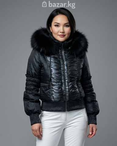 Стильная женская куртка MERSI (Италия), теплая, капюшон с натуральным мехом. Размер: 48
