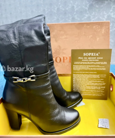 Элегантные женские кожаные сапоги Sopeia черного цвета. Сапоги средней высоты, с удобным устойчивым каблуком. Декоративная цепочка придает им стильный акцент. Внутри теплая подкладка, застегиваются на молнию. Идеальны для повседневной носки в холодное зимнее время года.идеально супер удобная обувь 👍🏼🔥
