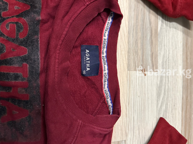 • Состояние: 7/10 (Хорошее состояние; легкий износ принта). • Категория: Одежда Унисекс. • Бренд: Agatha Paris. • Размер: 100. • Цвет: Бордовый. • Особенности: Круглый вырез, рифленые манжеты, флисовый начес и крупный принт на груди.