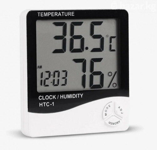 Цифровой термометр-гигрометр HTC-1 это комбинированный прибор для измерения температуры и влажности в помещении. Измеритель температуры и влажности воздуха используют для контроля параметров микроклимата в жилых, производственных и складских помещениях. С помощью крепежа, его можно повесить на стену, или использовать как настольную метеостанцию. Термо-гигрометр HTC-1 оснащен часами, имеет режим будильника и функцию памяти последних макс/мин., значений температуры и влажности воздуха. Все данные выводятся на большой ЖК дисплей крупными символами. Работу прибора обеспечивает 1 батарейка 1,5V AAA (мини пальчик), которая поставляется в комплекте с термо-гигрометром. Технические характеристики: - Диапазон измерения температуры: -50°C ~ +70°C - Диапазон измерения влажности: 10% ~ 99% RH - Питание: 1 батарейка ААА (входит в комплектацию) - Размеры: 105 х 98 х 24 мм. - Вес устройства: 114 гр. Комплектация: - Термометр - гигрометр HTC-1 - Инструкция на англ. - Батарейка ПОРЯДОК РАБОТЫ Установите батарею 1,5В типа «ААА» в отсек электропитания. Ваш прибор уже готов к работе. Режимом по умолчанию является индикация текущего времени. Кнопка MODE предназначена для переключения между режимами индикации времени и даты, 12- и 24-часовым форматами времени, установки текущего времени и будильника. Кнопка ADJ позволяет регулировать значения установок. Кнопка MEMORY показывает максимальное и минимальное значения температуры и влажности, оставшиеся в памяти прибора, а также позволяет стереть их. Нажатие кнопки RESET cзади панели сбрасывам настройки на значения по умолчанию (12:00 в 24-часовом формате времени; установки даты по умолчанию – 1.01, первое января). УСТАНОВКА ВРЕМЕНИ И ДАТЫ Пальцем зажмите кнопку MODE и держите нажатой где-то 2 секунды. В следствии чего начинает мигать разряд минут. Далее жмем ADJ и установливаем нужную величину значение разряда минут. Продолжая удерживать кнопку MODE, вы сможете точно так же откорректировать время и дату. Чтобы переключиться из режима времени в режим даты, один раз нажмите ADJ (как только настроили все нужные значения в течении 3 секунд не нажимайте кнопок, тогда прибор выйдет из режима настройки). УСТАНОВКА БУДИЛЬНИКА В режиме реального времени ("двоеточие" между значением часов и минут, мигают) нажимаем MODE, дисплей переводится в режим настройки будильника ("двоеточие" не мигают). Теперь нажимаем ADJ, переключается функция на «Сигнал-будильник каждые 15 минут»/«Сигнал-будильник каждый час» (на мониторчике отобразиться надпись «Alarm»). Удерживаем нажатой кнопочку MODE в течение 2 сек., после мы можем установить будильник. При выборе функции «Звонить каждый час» на дисплейчике прибора высветится значок •))) . Через минуту, когда прибор находится в режиме установки будильника, он вернется в режим реального времени. #влажность #термометр #температура #часы#ТермометрГигрометр #Гигрометр #Термометр #ИзмерительТемпературы #ИзмерительВлажности #Термогигрометр #ПогоднаяСтанция #ПриборДляИзмерения #ДляДома #ДляКвартиры #ДляОфиса #КомнатныйТермометр #КомнатныйГигрометр #ЭлектронныйТермометр #ЭлектронныйГигрометр #ДомашняяМетеостанция #КонтрольКлимата #ТермометрВлажности #Гигростат #ИзмерениеКлимата #ТермометрЦифровой #ГигрометрЦифровой