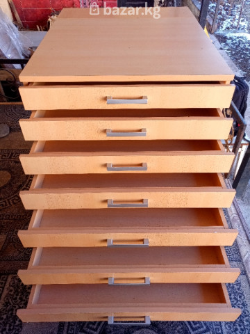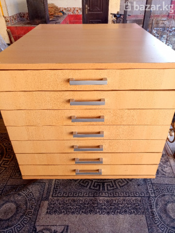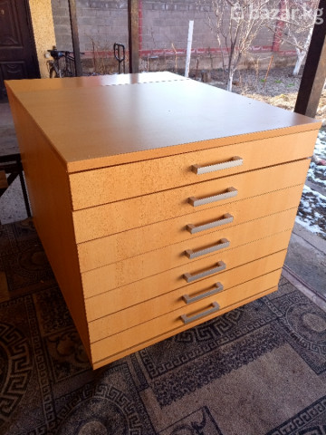 Тумба большая Можно класть плакаты не сгибая Размер ящиков внутри 75х90х7 7 ящиков, выезжают почти на всю длину В отличном состоянии