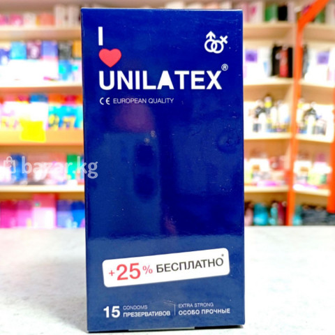Презервативы повышенной прочности «Unilatex Extra Strong», упаковка 15 шт. Особо прочные презервативы из натурального латекса телесного цвета, с гладкой поверхностью, покрыты силиконовой смазкой с нейтральным ароматом. Размеры: Длина 190, ширина 54 +/- 2 мм, толщина стенки 0,08 мм. В упаковке 12 презервативов + 3 презерватива бесплатно. Производитель: Unilatex.