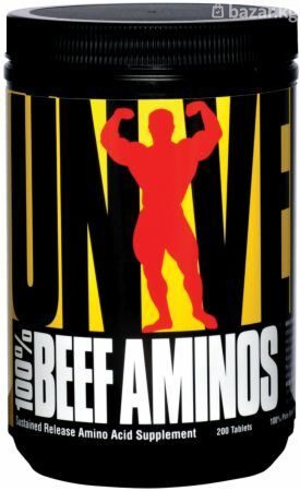 Описание 100% Beef Aminos 100% Beef Aminos – это довольно редкие аминокислоты, которые выделены из мяса говядины. Подобный подход можно назвать оригинальным, учитывая, что подавляющее большинство аминокислот получаются из молочной сыворотки. Или, в крайнем случае, из яичного белка. Однако в случае выбора мяса в качестве сырья конечный продукт получается иной. В нем те же аминокислоты, что в случае с яичным белком или сывороткой, но совсем в иных пропорциях. А иные пропорции аминокислот оказывают и иное действие на организм. По сути эффект от приема 100% Beef Aminos схож с приемом качественной говядины и мгновенным ее пищеварением и усвоением. Скорее всего эффект от приема 100% Beef Aminos будет в целом схож с эффектом от приема других аминокислотных препаратов. Однако организму требуется разнообразие не только в тренировочном процессе, не только при выборе упражнений, но и в питании. Изменение спектра потребляемых веществ активизирует организм, заставляет его постоянно быть в тонусе, стимулирует обмен веществ. И в этом смысле данный продукт придется как нельзя кстати. Помимо чистейших аминокислот 100% Beef Aminos содержит витамины А, С и В6. Они не только оказывают благотворное влияние на организм, но и улучшают усвоение аминокислот. Рекомендации по применению 100% Beef Aminos Принимайте в течние дня по 2 таблетки 2-3 раза между приемами пищи. Ингредиенты 100% Beef Aminos Количество питательных веществ в одном порции (2 табл.) продукта: Калорийность – 12 ккал Белок – 3 г Витамин A – 25 МЕ (< 1% рекомендуемой суточной нормы) Витамин C – 8 мг (13%) Ниацин – 2,6 мг (13%) Витамин B6 – 2 мг (100%) Типичный аминокислотный состав на 100 г говяжьего белка Незаменимые аминокислоты L-Лейцин (ВСАА) – 3,900 мг L-Изолейцин (ВСАА) – 1,700 мг L-Валин (ВСАА) – 2,800 мг L-Треонин – 2,100 мг L-Лизин – 5,100 мг L-Фенилаланин – 2,300 мг L-Триптофан – 300 мг L-Метионин – 1,200 мг L-Гистидин –1,200 мг Заменимые аминокислоты L-Аргинин – 7,300 мг L-Аспарагиновая кислота – 6,200 мг L-Аланин – 8,800 мг L-Цистеин – 500 мг L-Глутаминовая кислота – 11,300 мг L-Глицин – 20,100 мг L-Гидроксипролин – 9,700 мг L-Пролин – 11,100 мг L-Тирозин – 900 мг L-Серин – 3,400 мг Другие ингредиенты: 100% говяжий аминокислотный комплекс (говяжий протеин изолят, говяжий альбумин концентрат, высушенная печень аргентинской говядины), дикальция фосфат, микрокристаллическая целлюлоза, стеаринова кислота, магния стеарат. ВкусНатурал