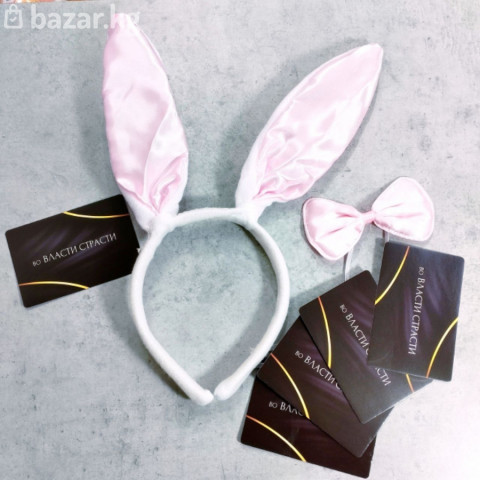 Милый и соблазнительный комплект для ролевых игр. Нежно-розовый атлас в сочетании с белым пухом создаст образ невинной, но игривой «зайки».