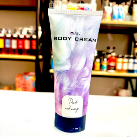 MILV Body Cream Peach and Mango — увлажняющий крем для тела с роскошным дизайном и тропическим ароматом (объём, вероятно, 150–200 мл)! Ключевые особенности: • Насыщенный, сочный аромат персик + манго — сладкий, фруктовый, летний, держится долго на коже как лёгкий парфюм. • Богатая текстура: питает, смягчает и восстанавливает сухую кожу, оставляет бархатистое покрытие без липкости. • Быстро впитывается — идеально после душа, перед сном или в течение дня. • Яркий градиентный тюбик с перьями в пастельно-фиолетово-голубых тонах — выглядит стильно и подарочно. • Подходит для ежедневного ухода, особенно для сухой/нормальной кожи. Крем, который делает кожу нежной, а настроение — летним! 🍑🥭✨ Идеальный выбор для тех, кто любит фруктовые гурманские ароматы и приятные тактильные ощущения. 😍