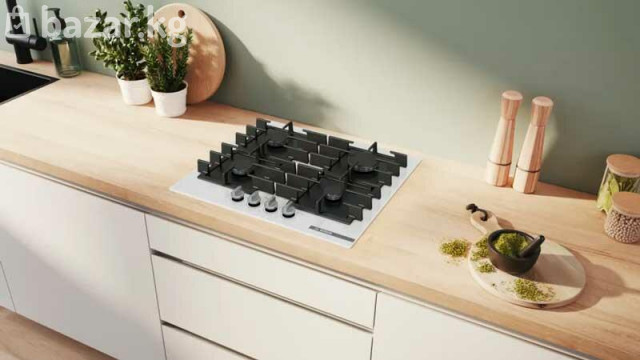 Ключевые преимущества: Автоматический электроподжиг Белая поверхность из закалённого стекла Чугунные решётки ОСНОВНЫЕ ХАРАКТЕРИСТИКИ Вид газовая Количество конфорок 4 Серия Serie | 6 Высота, см 4.5 Ширина, см 59 Глубина, см 52 Габариты ниши для встраивания (Ш х Г), см 56-56.2 х 48-49 ДИЗАЙН Цвет белый Материал поверхности закаленное стекло Особенности дизайна прямой край Материал решеток чугун УПРАВЛЕНИЕ Элементы управления поворотные РЕЖИМЫ И ФУНКЦИИ Регулировка пламени FlameSelect Есть Количество ступеней мощности 9 МОЩНОСТЬ КОНФОРОК Передняя левая, кВт 1.75 Задняя левая, кВт 1.75 Передняя правая, кВт 1 Задняя правая, кВт 3 Суммарная мощность конфорок, кВт 7.5 БЕЗОПАСНОСТЬ Автоматический электроподжиг Есть Газ-контроль термоэлектрическая защита ТЕХНИЧЕСКИЕ ХАРАКТЕРИСТИКИ Минимальная толщина столешницы, мм 30 Мощность подключения, Вт 1 Вес нетто, кг 16.5 Сетевой кабель с евровилкой Длина сетевого кабеля, м 1 Напряжение, В 220-240 Частота, Гц 50-60 Заводская настройка на газ, мбар 20/25 Форсунки (жиклеры) для баллонного газа в комплекте Есть