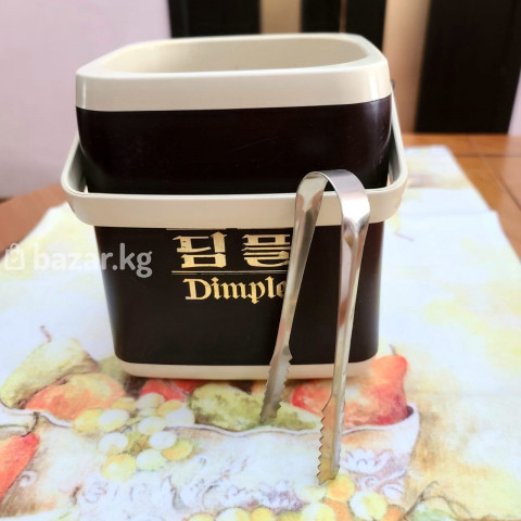 Ведёрко-ледник Dimple с щипцами - Компактный квадратный ледник для подачи льда. - Фирменный дизайн Dimple: тёмно-корпус с золотым логотипом, светлые окантовки. - Материал: прочный пластик; внутренняя вставка/поддон для стока талой воды. - Съёмная верхняя «чаша» и боковые оси-держатели позволяют использовать как переносную ёмкость. - В комплекте металлические щипцы с насечками для удобного захвата кубиков. - Подойдёт для домашнего бара, пикника или сервировки виски и коктейлей.
