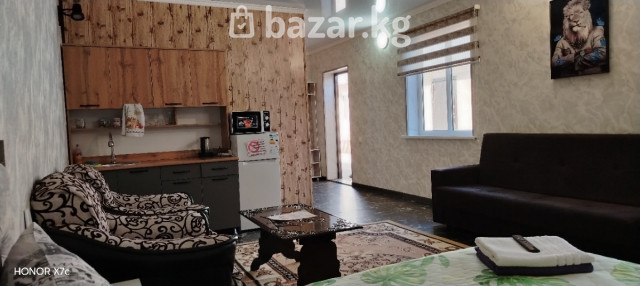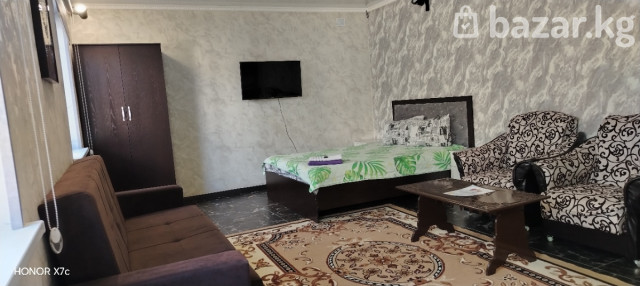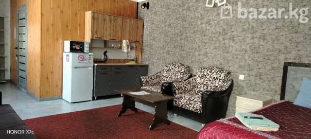 Дорогие гости и жители города КАРАКОЛ! Сдаются номера класса Люкс в стиле квартира - студия! Всё есть для хорошего отдыха и проживания! В номерах имеется удобная мебель, свой личный душ, туалет. В душе есть шампунь мужской и женский. Банные полотенца, мыло для рук и одноразовые наборы для чистки зубов. В номерах есть телевизор, вайфай и кухня со всем необходимым-чайник,кофе, чай, посуда, ложки, вилки, микроволновая печь, холодильник. Очень удобное и тихое расположение. В шаговой доступности есть магазины, кафе. На территории отеля имеется баня на заказ, за отдельную плату.