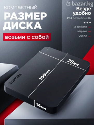 🔥В наличии, Акция, Супер цена🔥 🔥Переносной внешний жесткий диск Toshiba для хранения ваших данных/файлов итд (как флешка), подходит под любой телефон у кого есть type-c Подходит для 📱телефона📱айфона📱планшета💻ноутбука🖥️компьютера🕹️playstation всех видов, xbox, просмотр фото-видео на tv, и аналогичных устройствах. Скорость передачи быстрая 3.0-3.2 Два вида Подключения Usb+type c 🟢Самая лучшая цена и качество на рынке! 🎟️512 Gb 3500 сом 🎟️1000 Gb 6500 сом 🎟️Оригинальная фирма Toshiba Подходит под все системы windows/macos/linux/android/телефоны/айфоны/планшеты 🎟️используется в качестве переносной флешки для сохранения ваших данных по типу фото/видео/приложений/важных документов и любых других файлов, можно использовать как дополнительную память для ноутбука/компьютера/телефона. 🚗есть доставка по городу и в регионы внешний жесткий диск — это устройство, которое позволяет хранить большие объемы информации, а также легко переносить данные с одного устройства на другое. Внешний жесткий диск подключается к компьютеру, ноутбуку, ps всех видов, xbox, смартфону или телевизору через usb-порт или другой интерфейс и работает как дополнительный накопитель для разных файлов.
