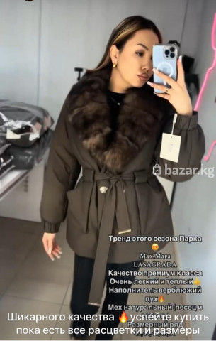 Зимние пуховики с натуральным меховым воротником. Удивительно легкие и при этом очень тёплые. 🔥🔥🔥 - Бренд: LASAGRADA / MaxMarа ❤️ - Производство Турция 🇹🇷 - Тип: короткие зимние пуховики. - Материал верха: плотная водоотталкивающая ткань. - Утепление: верблюжий и гусиный пух/100% шерсть. - Воротник: широкий съемный воротник из натурального качественного меха песец под соболь. - Застежка: центральная планка на крупные кнопки/пуговицы. - Пояс: текстильный, в тон изделия, продевается через широкие шлевки - Карманы: объемные накладные спереди. - Манжеты: на эластичной резинке для защиты от ветра - Фурнитура: крупные декоративные пуговицы (золотистые на некоторых моделях) - Детали: внутренняя цепочка-подвес для удобного хранения на плечиках. - Цвета на фото: 🔥 Шоколадный 🔥 Графитовый 🔥 Фисташковый (хаки) 🔥 Серо зелёный необычный цвет - Посадка: свободная, с акцентом на талию за счет пояса - Длина: до линии бедра. Эффектная зимняя модель с теплым меховым воротником, который визуально удлиняет шею и надежно защищает от холода. Практичная ткань верха и объемные карманы делают куртку удобной для повседневной носки, а элегантная фурнитура придает премиальный вид. Идеальна для городских образов и сочетаний с джинсами, трикотажем и высокими сапогами. В наличии есть как короткие так и длинные модели с капюшоном и без капюшона. Осталось несколько штук, уточняйте последние размеры по самым низким ценам. БОНУС 🔥🔥🔥 При покупки пуховика отдам БЕСПЛАТНО 🔥🔥🔥детские вещи и обувь в отличном состоянии, на девочку 5-8 лет.