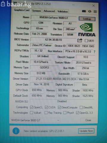 Видеокарта Zotac Synergy Edition Nvidia Geforce GT9600 512MB DDR3 256BIT VGA DVI 6-Pin Доп питание Кулер не шумит, термопаста новая, драйвера устанавливаются. 3-дня на проверку Цена 1700Сом 3-дня на проверку, возможна установка и проверка на месте. ✅Доставка по городу 150-300сом а так же в регионы ✅Для быстрого заказа ответа пишите Whatsapp ✅График работы 10.00 до 22.00 Без выходных №399