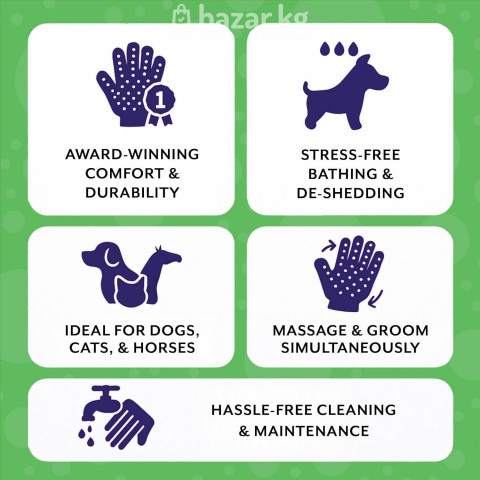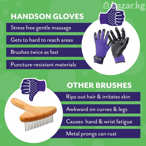 Эти перчатки — настоящий прорыв в уходе за животными. В отличие от жестких щеток, HandsOn позволяют вам чувствовать тело животного, что делает процесс чистки или мытья безопасным и приятным. Перчатки для груминга домашних животных H HANDSON - запатентованные, занимающие первое место в рейтинге и отмеченные наградами перчатки для удаления шерсти, купания и ухода за животными - мягкая щетка для кошек, собак и лошадей (серый, средний размер) Подходит для собак, кошек, лошадей и других животных — будь то удаление шерсти, купание или массаж, эти перчатки достаточно гибкие для всех ваших потребностей по уходу за питомцами. Мягкие щетинки обеспечивают эффективный груминг без неприятного трения. Эти перчатки для груминга справятся с любым типом шерсти, легко обрабатывая короткую, среднюю, длинную и жесткую шерсть с одинаковой эффективностью. Оригинальные запатентованные перчатки для груминга домашних животных — ухаживайте за своим питомцем с комфортом с помощью наших легких перчаток, разработанных с резиновыми выступами для успокаивающего массажа, имитирующего нежное прикосновение гибких щетинок. Созданы для любых характеров питомцев и достаточно прочны, чтобы выдерживать купание, игривые покусывания и много любви! Это больше, чем просто средство для удаления шерсти — абразивные выступы стимулируют кровообращение и распределяют естественные масла, способствуя здоровью кожи и шерсти вашего питомца! Двойное назначение перчаток позволяет вам держать руки сухими, чистыми и защищенными, обеспечивая при этом вашему питомцу профессиональный уход. Прочные и легко чистящиеся — эти перчатки для груминга созданы для долговечного использования, они легко выдерживают интенсивную работу и купание. Просто потрите руки в перчатках, и шерсть животного легко сойдёт. После груминга промойте перчатки водой и высушите на воздухе или постирайте в стиральной машине для быстрой и лёгкой стирки. Лапы вниз, питомцы в восторге! — Наши клиенты отмечают, что перчатки для груминга — отличный инструмент для тщательной чистки во время мытья, а также для удаления линьки и массажа без воды благодаря неабразивным гибким выступам на пальцах и ладонях. Многие наши пушистые друзья, как маленькие, так и большие, с удовольствием используют эти перчатки в качестве особого подарка. HandsOn — жаныбарларды тазалоо, жуунтуу жана массаж жасоо үчүн дүйнөдөгү эң мыкты мээлейлер. Универсалдуу: Аттарга, иттерге жана мышыктарга бирдей ылайык келет. Жүндүн бардык түрүн (кыска, узун, катуу) оңой тазалайт. Массаждык таасир: Резина тишчелери теридеги кан айланууну жакшыртат жана жаныбарга жагымдуу сезим тартуулайт. Жуунтууга идеалдуу: Суу менен колдонууда жүндүн түбүнө чейин тазалап, колду кургак жана таза сактайт. Сапаты жана күтүү: Мээлейлер абдан бышык, кир машинада жууса болот жана тез кургайт. АКШда патенттелген оригинал продукт. Для заказа пишите нам напрямую в Личное сообщение или WhatsApp +1 (754)971-3802, в Telegramm @petusa_original #аттар #жылкы #иттер #мышыктар #атчабыш #көкбөрү #атбазары #кыргызстан #бишкек #жаныбарлар #уходзаживотными #мээлей #груминг#StarChoiceSelect #HandsOnGloves #груминглошадей #чисткасобак #товарыизсша #оригиналсша #equineprestige #canineelite #массаждляживотных #линька