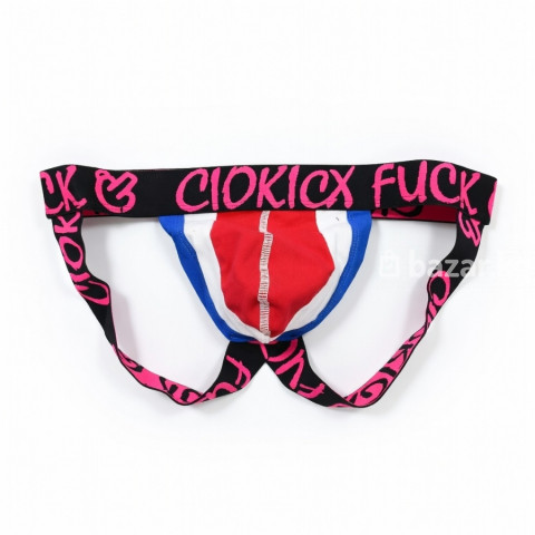 Этот мужской jockstrap — воплощение смелости и спортивного стиля. Яркое трехцветное сочетание красного, белого и синего цветов в центральной части создает динамичный и запоминающийся образ, напоминающий флаг. Эластичные черные резинки с контрастным розовым принтом обеспечивают надежную фиксацию и максимальную поддержку. Продуманный крой дарит абсолютную свободу движений и комфорт, подчеркивая мужскую сексуальность. Идеальный выбор для тех, кто не боится быть в центре внимания и ценит оригинальность в каждой детали.
