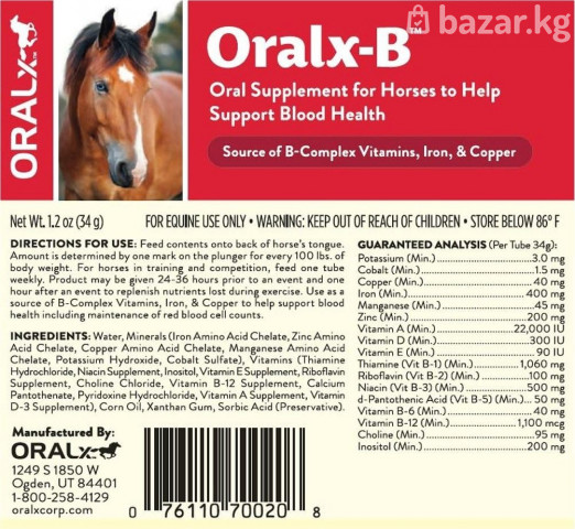 Этот продукт — отличная альтернатива Red Cell Booster в нашем каталоге Equine Prestige. Паста Oralx-B специализируется на «чистой энергии» через поддержку кроветворения. Благодаря хелатной форме минералов (железо и медь), она усваивается практически мгновенно, что делает её идеальной для восстановления сил прямо во время многодневных турниров по Көк-бөрү или после изнурительных скачек. Паста для улучшения кровообращения Oralx-B для лошадей, 34 г | Комплекс витаминов группы В, добавка железа и меди | Поддерживает здоровье красных кровяных клеток, восстановление работоспособности и восполнение питательных веществ | Удобный дозирующий шприц Поддерживает здоровье кровеносной системы и крови. Разработан для поддержания здорового количества красных кровяных клеток у лошадей, пострадавших от стресса, болезней, тяжелой работы или тренировок. Богато витаминами группы В и хелатированными минералами. Содержит необходимые витамины группы В, а также хелатированное железо и медь для поддержания выработки энергии, выносливости и общего самочувствия. Помогает восполнить питательные вещества, потерянные во время тренировок. Идеально подходит для лошадей, находящихся на тренировке или соревнованиях, для восстановления основных питательных веществ после интенсивных нагрузок. Простое и точное дозирование. Поставляется в удобном шприце с делениями — делайте одну отметку на каждые 100 фунтов веса тела для точного кормления. Качество производства США. Изготовлено в США из концентрированной смеси витаминов и минералов для надежной поддержки работоспособности. Oralx-B — машыгуудан жана мелдештерден кийин жылкынын канын калыбына келтирүүчү жана күч берүүчү атайын паста. Кан айланууга колдоо: Стресс, оору же оор жумуштан кийин кандагы кызыл клеткалардын (эритроциттердин) санын нормалдаштырууга жардам берет. Тез сиңүүчү курам: Курамындагы темир жана жез хелат түрүндө болгондуктан, организмге заматта сиңип, аттын тез калыбына келишине шарт түзөт. В тобундагы витаминдер: Метаболизмди жакшыртып, энергиянын деңгээлин көтөрөт. Так доза: Шприцтеги атайын белгилер аттын салмагына жараша дозаны так берүүгө жардам берет. АКШда жасалган жогорку сапаттагы продукт. Для заказа пишите нам напрямую в Личное сообщение или WhatsApp +1 (754)971-3802, в Telegramm @petusa_original #аттар #жылкы #атчабыш #көкбөрү #улактартыш #атбазары #атдары #жылкычарбасы #кыргызстан #бишкек #атжабдыктары #OralxB #энергия#StarChoiceSelect #Oralx #витаминыB #железодлялошадей #восстановлениелошади #товарыизсша #оригиналсша #equineprestige #лошадибишкек #спортивнаяамуниция