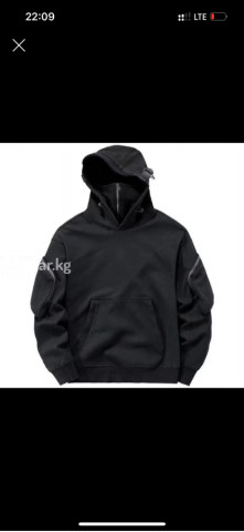 Худи унисекс, черное, с капюшоном и молнией у горловины. - Утепленный капюшон с высоким воротом, регулируемая пряжка на козырьке. - Карман-кенгуру спереди. - Накладные карманы на рукавах с боковыми молния