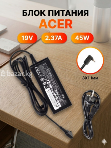 ⚡Зарядное устройство для ноутбуков Acer 🟣Цена 1000 сом ⚡Основные характеристики: - Мощность: 45W - Выходное напряжение: 19V - Ток: 2.37A - Разъём: 3.0 × 1.1 мм (штекер с угловым коннектором) - Блок питания LiteOn, сетевой кабель в комплекте - Надёжная упаковка ⚡Совместимость: - Подходит для большинства моделей ноутбуков Acer с разъёмом 3.0 × 1.1 мм и параметрами 19V/2.37A (или совместимыми по мощности 45W). ⚡Преимущества: - Стабильное питание и быстрая зарядка - Качественные компоненты и защита от перегрузки - Удобная длина кабеля, липучка-органайзер для фиксации проводов ⚡Параметры подключения: - Вход: сетевой кабель с европейской вилкой - Выход: DC 19V, 2.37A, штекер 3.0 × 1.1 мм ⚡Идеально как основной или резервный адаптер для ноутбуков Acer с указанным разъёмом и характеристиками.