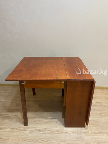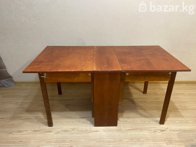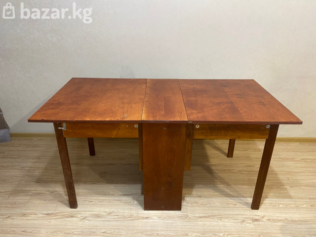 Крепкий раскладной деревянный стол Большой из Дерева 🪵 В сложенном виде компактный, в разложенном — большой. Крепкий, устойчивый, всё работает. Подходит для кухни, гостей, дачи. Состояние хорошее, есть следы использования. Цена: 4 199 сом Самовывоз 😁 +996559328885 По всем вопросам прошу сразу звонить 📞
