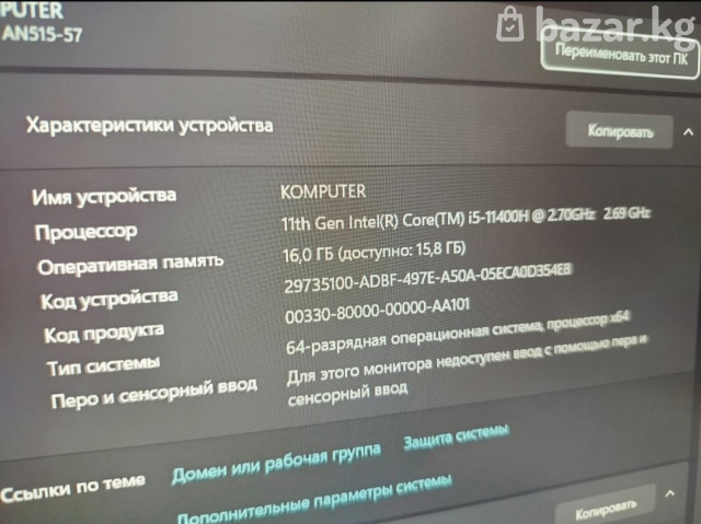 ACER NITRO 5 Привозной из США🇺🇸 Мощный Игровой производительный ноутбук для игр/графических работ/дизайна/монтажа/фото видео обработки/3D/программирования и других сложных универсальных задач 🔹Процессор:Intel Core i5-11400H 2.7 Ghz до 4.5 ghz boost 12 логических ядер/потоков 🔹Видеокарта RTX3050Ti+Intel(R) Xe Graphics 🔹Озу 16 Gb 🔹Память для хранения 512 Gb SSD 🔹Экран 15.6 FHD IPS (1920x1080) 144 гц 🔹Состояние б/у отличное, полностью готов к работе 🔋Батарея в режиме интернет серфинга 3-4 часа и выше 🔦Подсветка клавиатуры RGB с регулировкой в любой цвет, а также другие широкие возможности настроек этой модели. 🔸Установлен свежий Windows 11+программы для офиса и работы 🔸Есть все необходимые разьемы: камера, встроенный микрофон. Wi-fi, bluetooth, usb 3х, hdmi. Встроенные динамики, Lan, Type-s, разъём для наушников 🚗Бесплатная доставка по городу и всему Кыргызстану 🎁В подарок сумка+мышка+коврик 🔌Зарядка в комплекте 📋Гарантия 3 месяца ❌Обмена и рассрочки нет