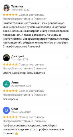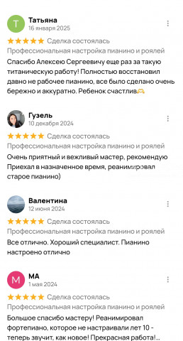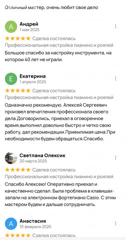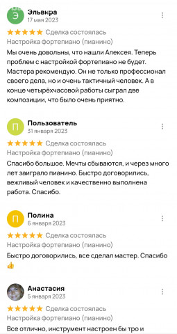 Здравствуйте! Бережно, профессионально, недорого помогу вам настроить ваше фортепиано (пианино, рояль), отрегулировать клавишно-молоточковый механизм. Помогу прокомментировать на осмотре при покупке фортепиано. Имею специальность настройщика фортепиано и опыт работы более 20 лет. Это моё любимое дело, вы останетесь довольны. Выезд по г. Бишкек. Цена договорная, по трудоёмкости и количеству возможно использованных материалов. Не всегда могу вовремя ответить на звонок, предпочтительнее письменно, в том числе Телеграм и Вотсапп. piano tuning and adjustment